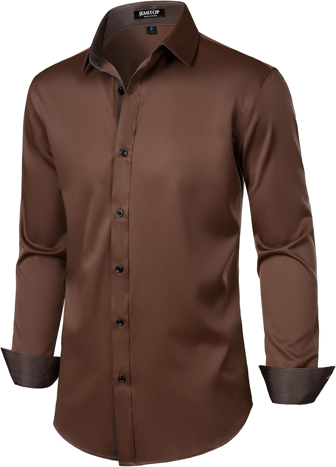 JEMITOP Men's Stretch Multi-Use Long Sleeve Dress Shirts Party Prom Wedding Shirts with Slight Sheen