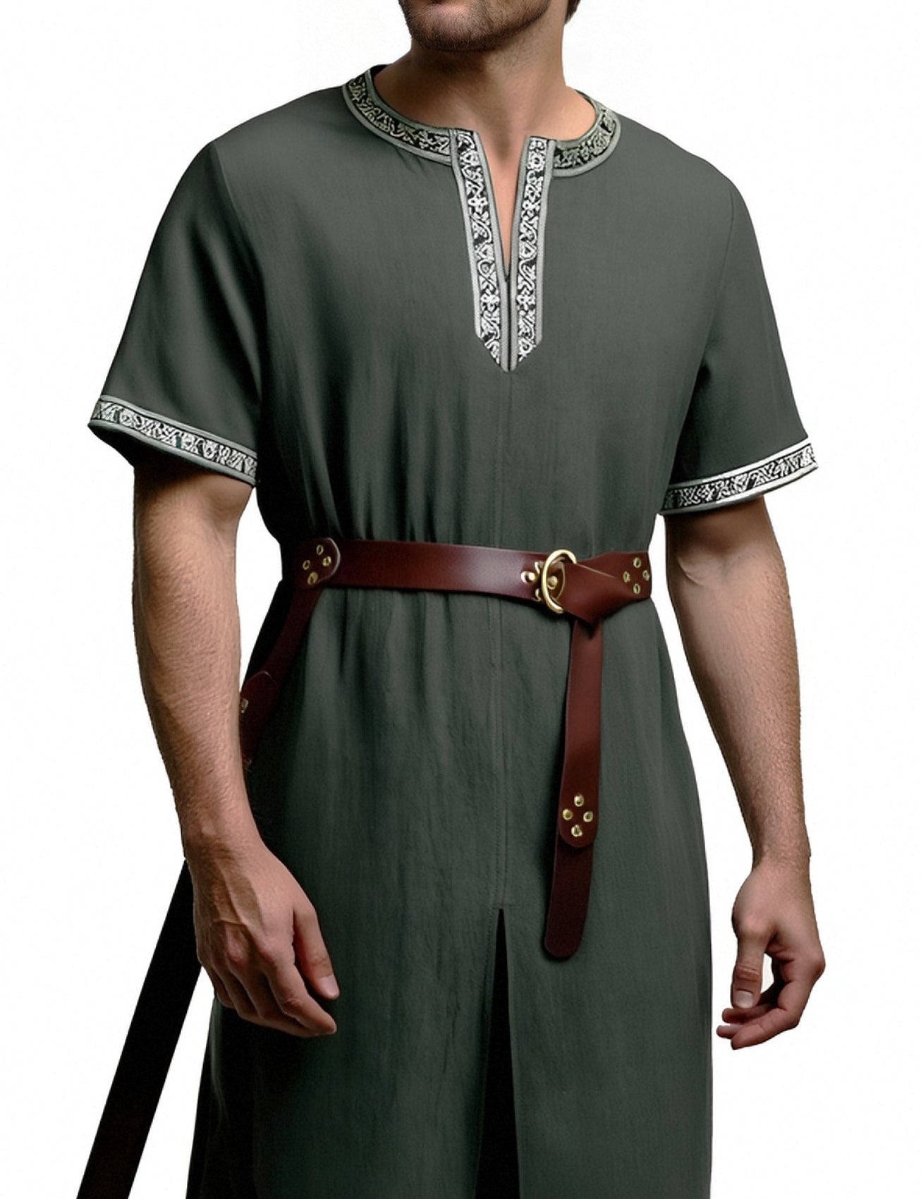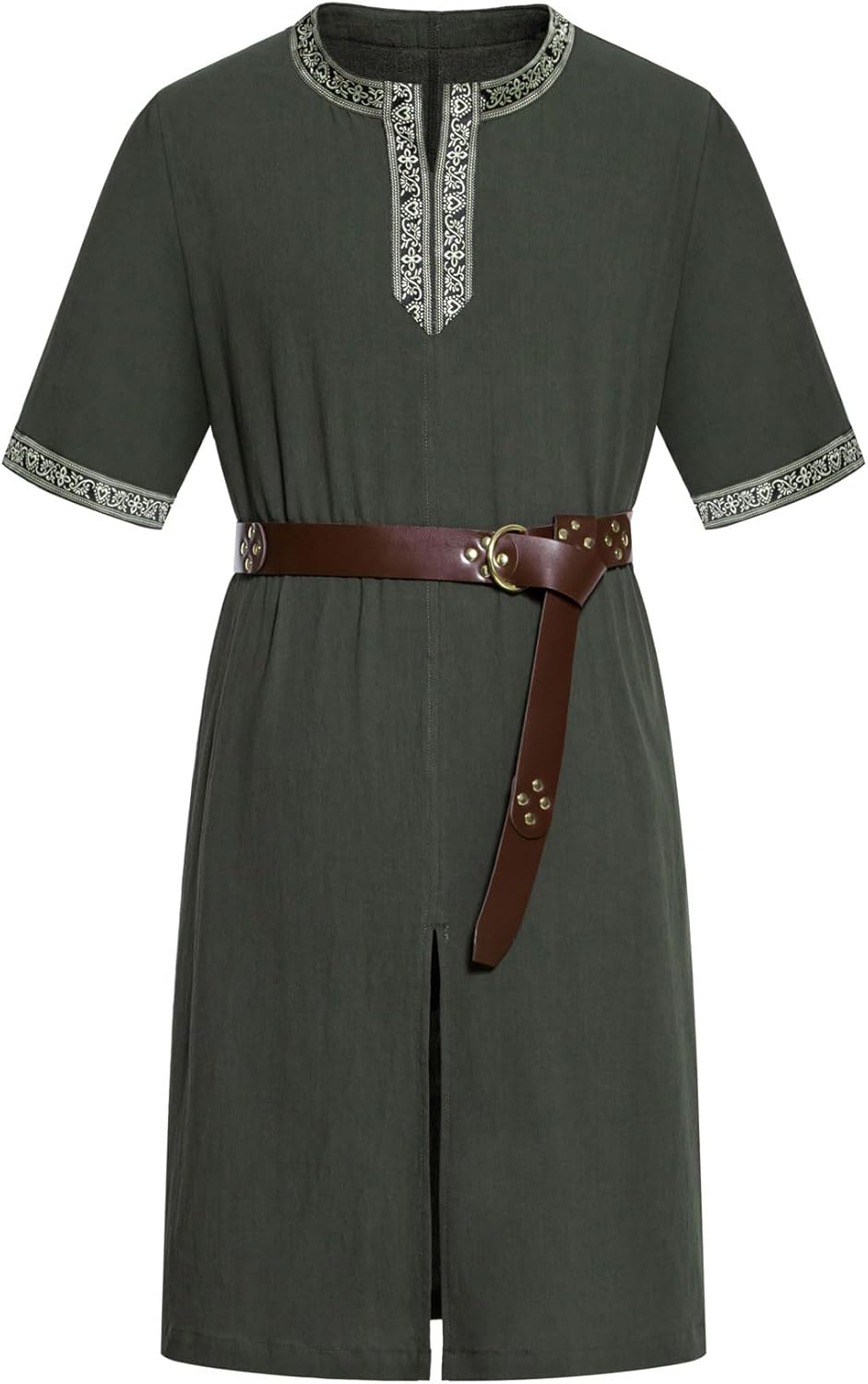 - Design Concept: Retro mid-length tunic top / Exquisite jacquard stitching design / Center slit at hem / Regular fit / Cosplay costume for medieval,renaissance,viking,knight,warrior,pirate,halloween