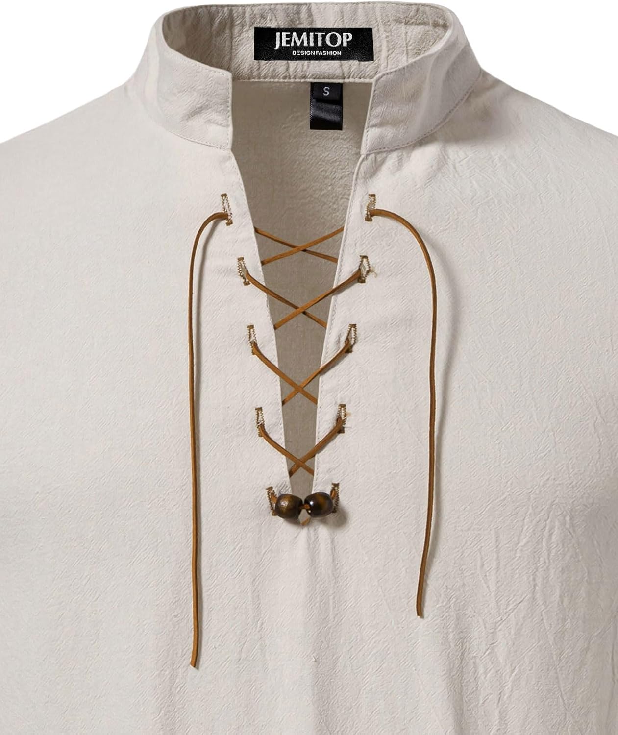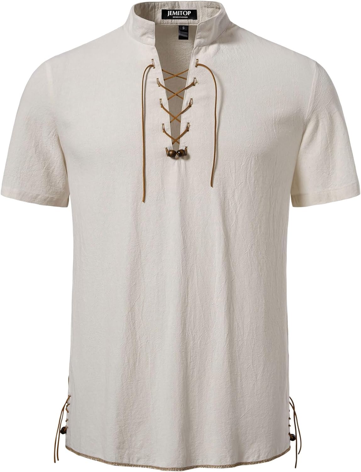 JEMITOP Men's Pure Cotton Vintage Short Sleeve Lace Up Shirts for Renaissance Pirate Viking Medieval Costume