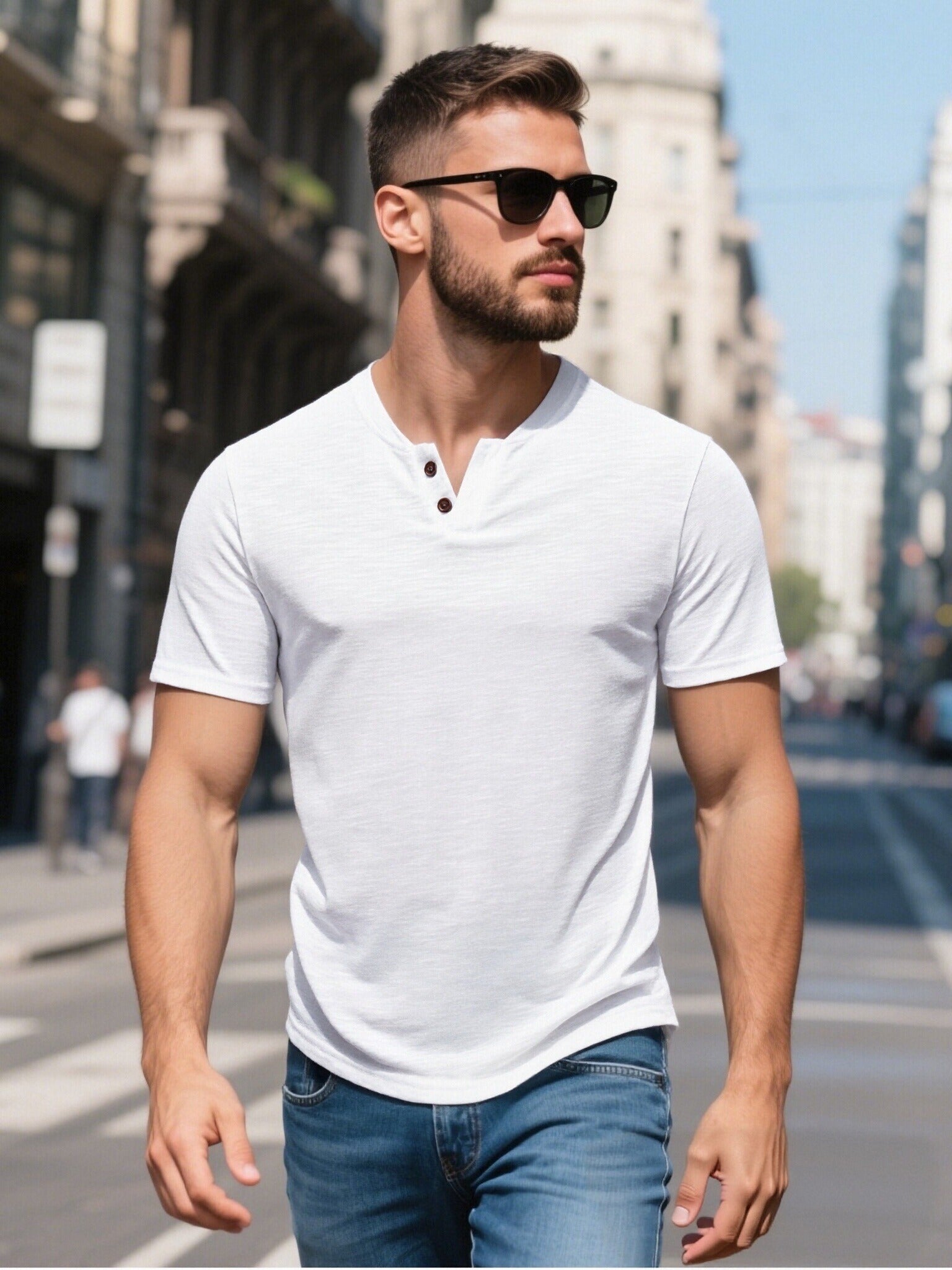 - Design Concept: Classic 2 buttons cutaway collar tee shirt, casual stylish short sleeve v-neck t-shirt ,slim fit ,highly elastic fabric ensures flexible movement
