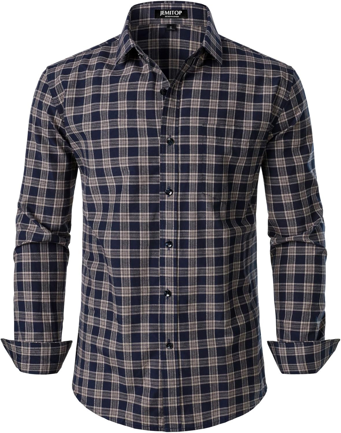 JEMITOP Men's Transitional Weather Slim Fit Long Sleeve Button Down Shirt Business Casual Dress Shirts with Pocket