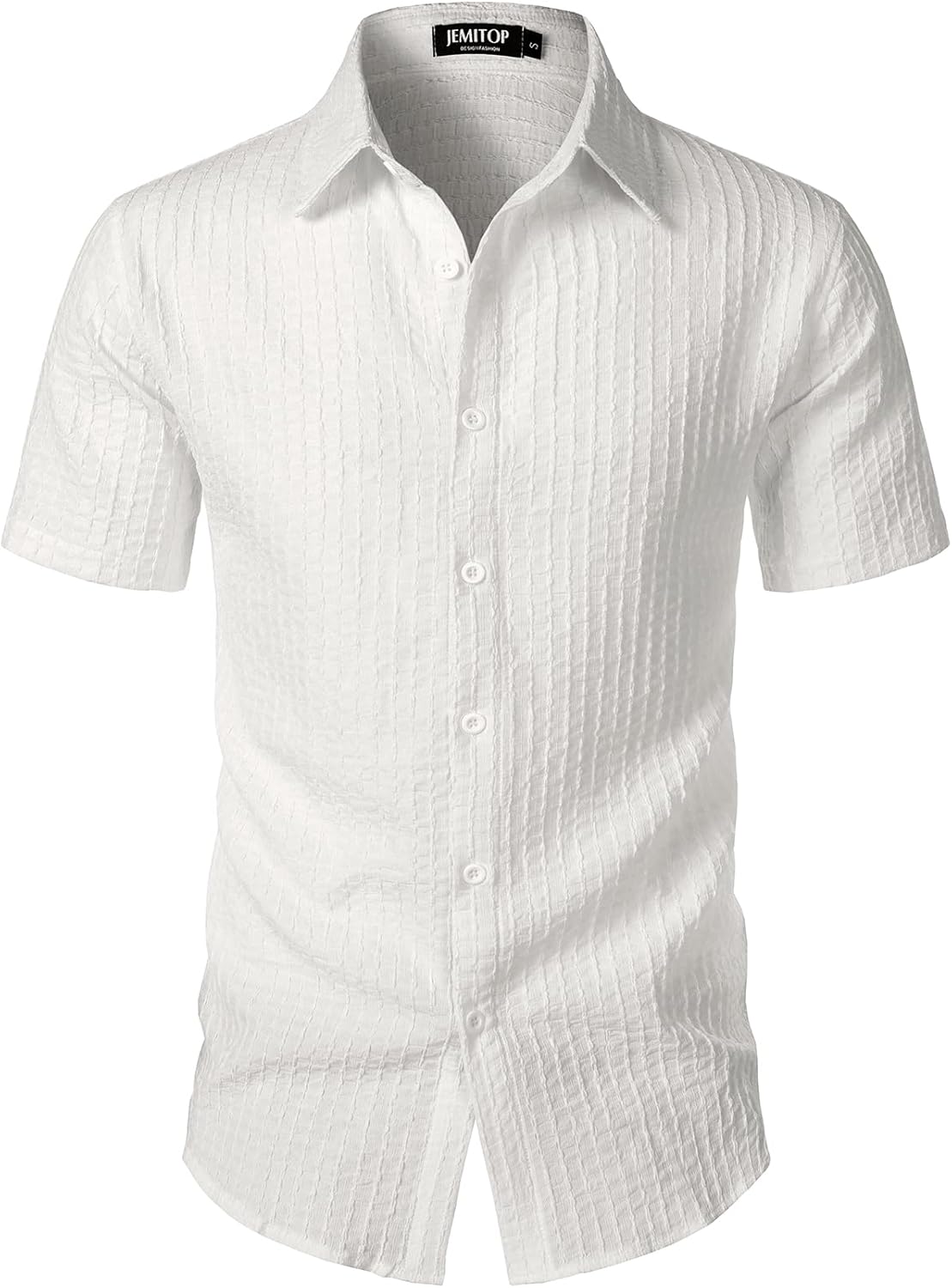 JEMITOP Men's Knit Shirt Summer Casual Short Sleeve Button Down Shirt for Beach Vacation